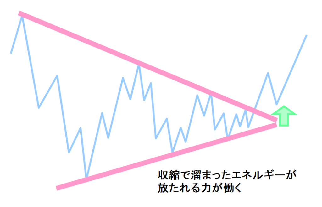 収縮した「期間が長いほど」「値幅が狭いほど」エネルギーは溜まり、放たれた時の力になる
