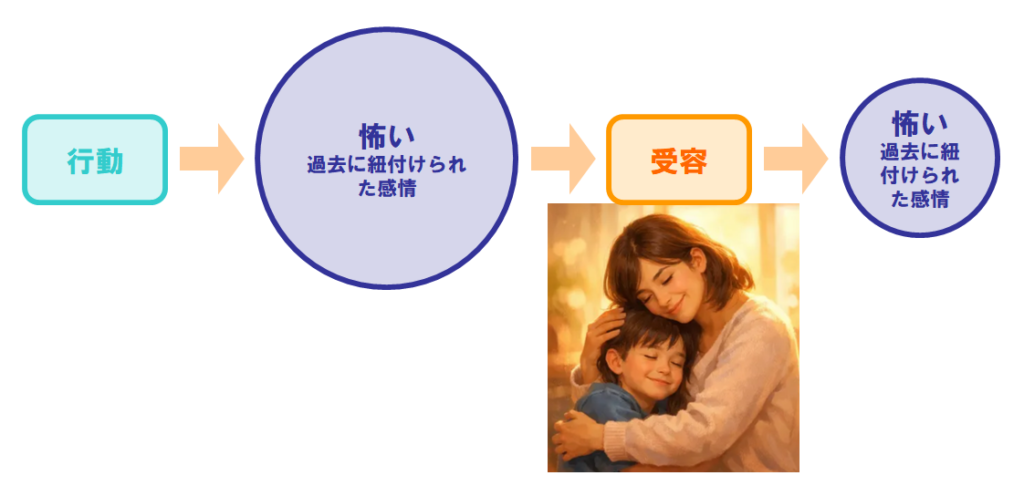 経験に紐付けられた負の感情を改善するためには、その感情が発生する経験をして、発生した負の感情を認めて(成仏させて)あげる必要があります。